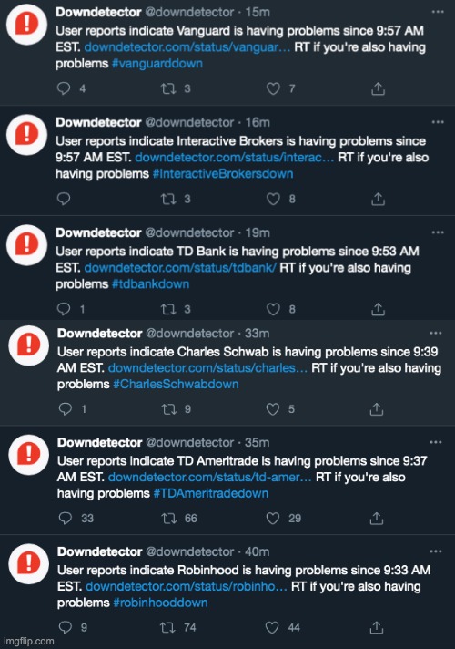 High volume of e-traders or DDOS attacks by the hedge funds?