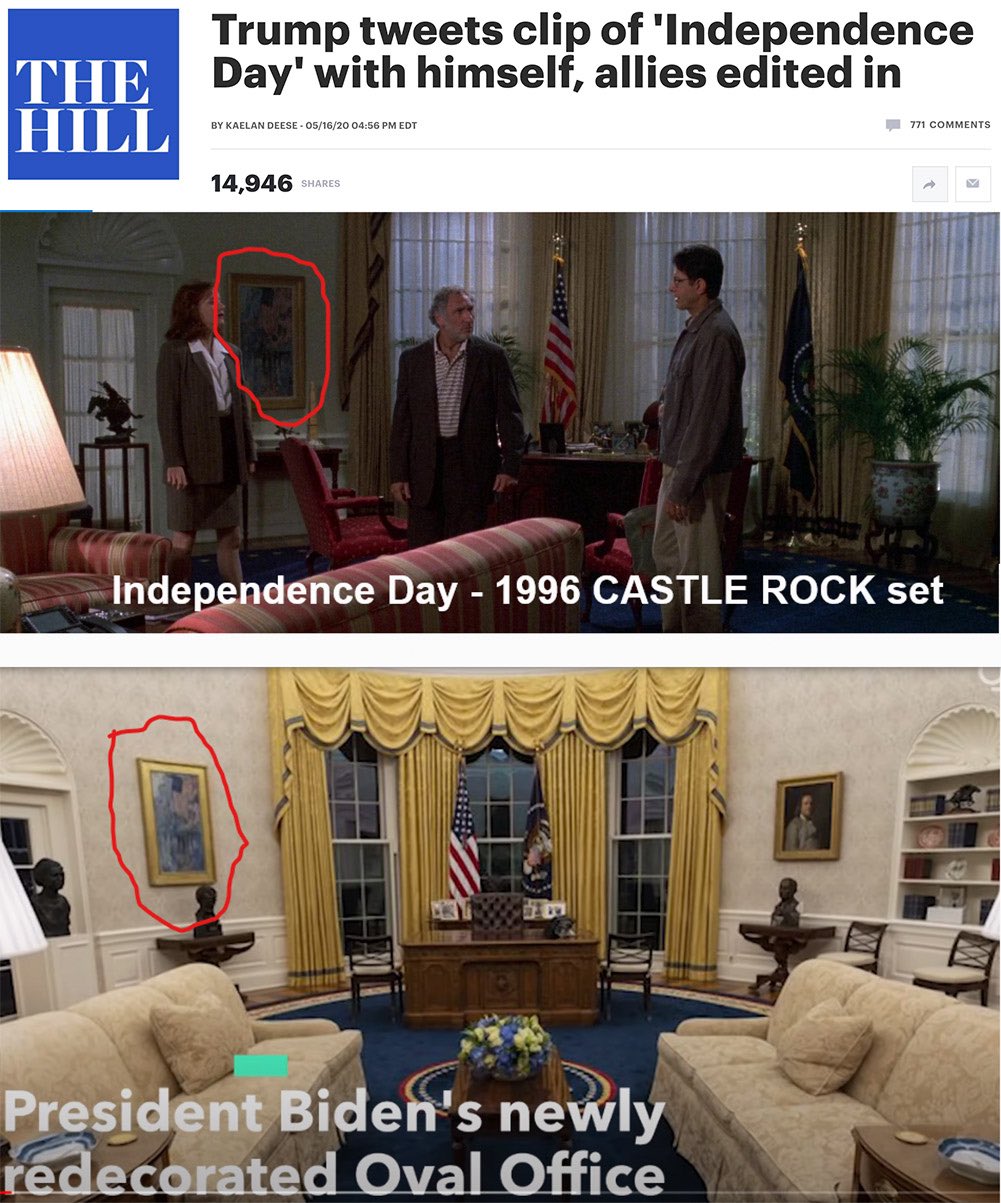 Or it's a fake Oval Office. He's only on his second day and you think they've fully remodeled the Oval Office already?