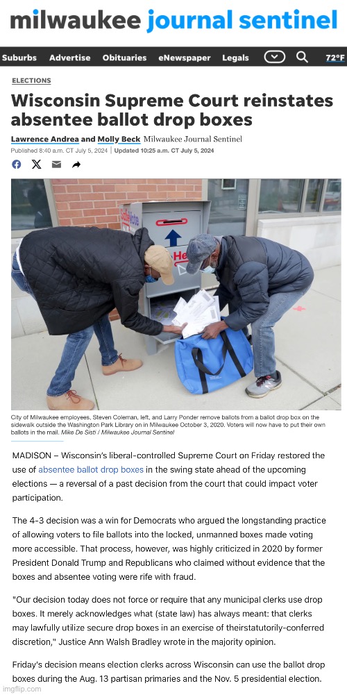 Wisconsin Supreme Court Reinstates Ballot-Stuffing Boxes….