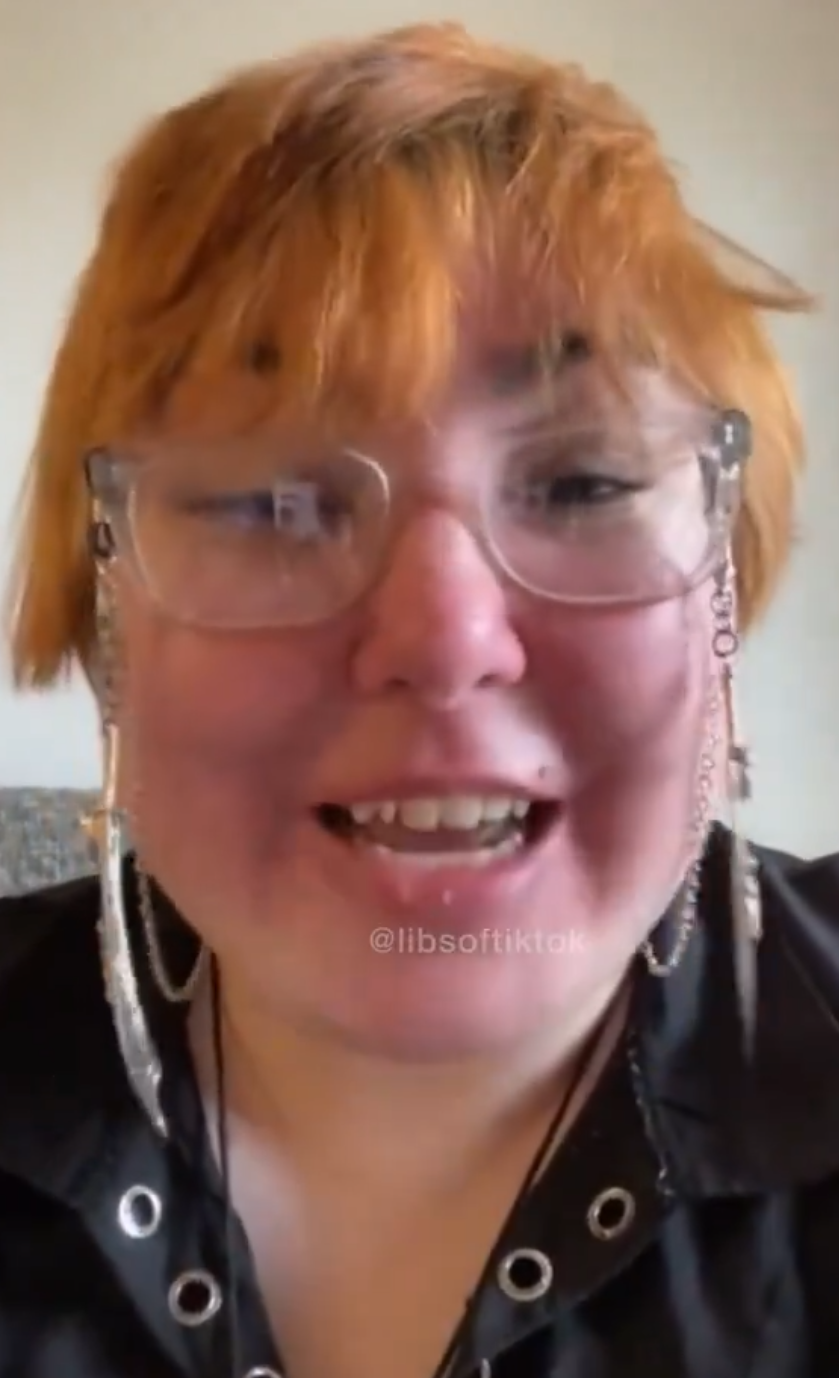 Her weird swords on her glasses are a distraction to scream he/she /it needs help.