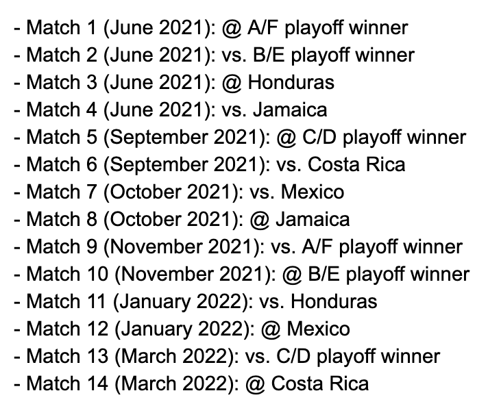 USMNT will play the winner of the Group A/Group F playoff on Matchday 1.