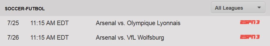 #EmiratesCup has finally been added to @ESPN3's schedule for the weekend.