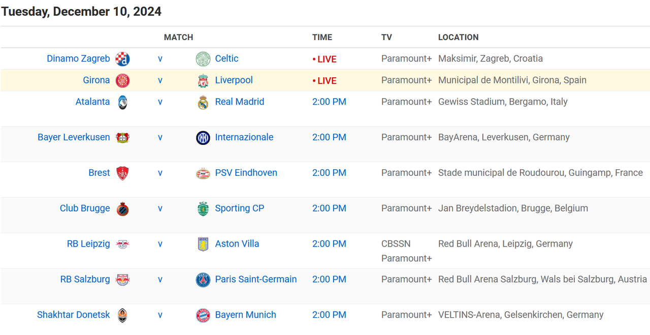 Liverpool Lille (only in that Lille have actually continued to surprise so worth tuning into just to see how long it stays competitive)