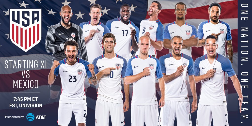 Here is your @ussoccer starting XI: No Yedlin, 3 CB's and Pulisic looking to be in the MF in front of Jones/Bradley. #USAvMEX