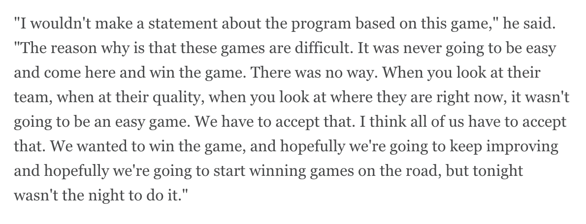 Gregg: "I wouldn't make a statement about the program based on this game"