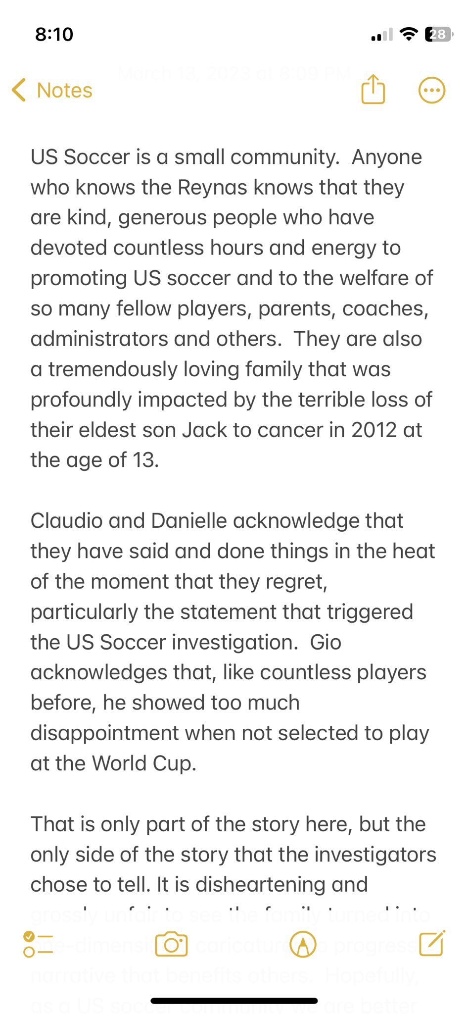 In 2019. Reyna sent texts to Gregg complaining about former U-17 coach Raphaël Wicky during the 2019 U-17 World Cup, while an unnamed USSF staffer claimed that Claudio “complained about the travel experience Gio Reyna had at the U-17 World Cup in November 2019 [and] said Mr. Reyna expected Gio Reyna to be treated better than other players.”