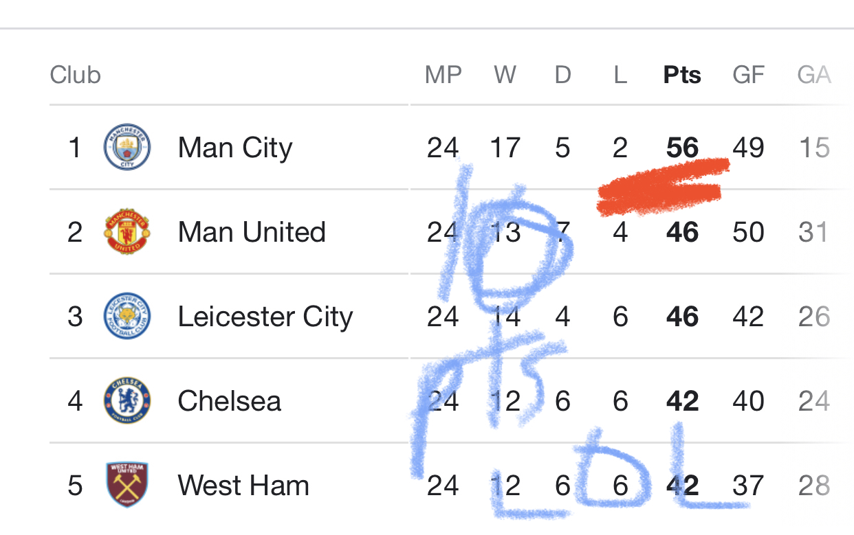 Yes. City is on a different level than any team in the EPL at the moment. And doing it without KDB.