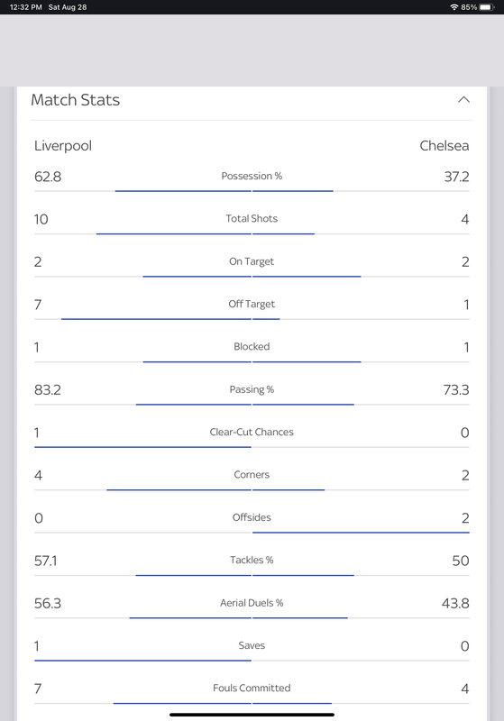 Even despite my bias, Chelsea has looked better on counter. Liverpool has controlled the game and midfield overall.