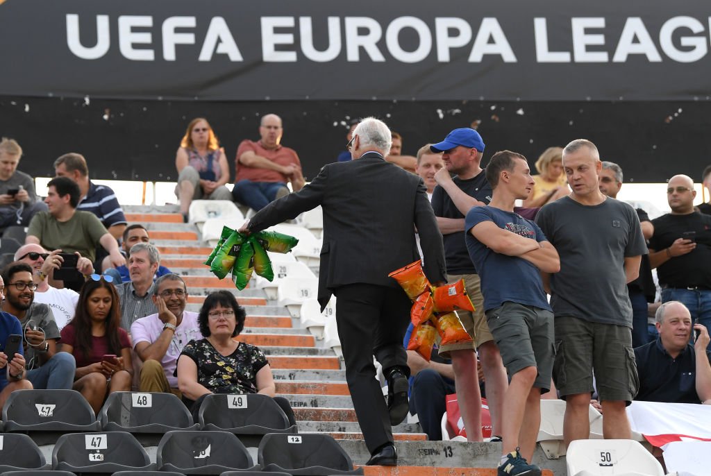 chelsea chairman handing out crisps to fans in greece