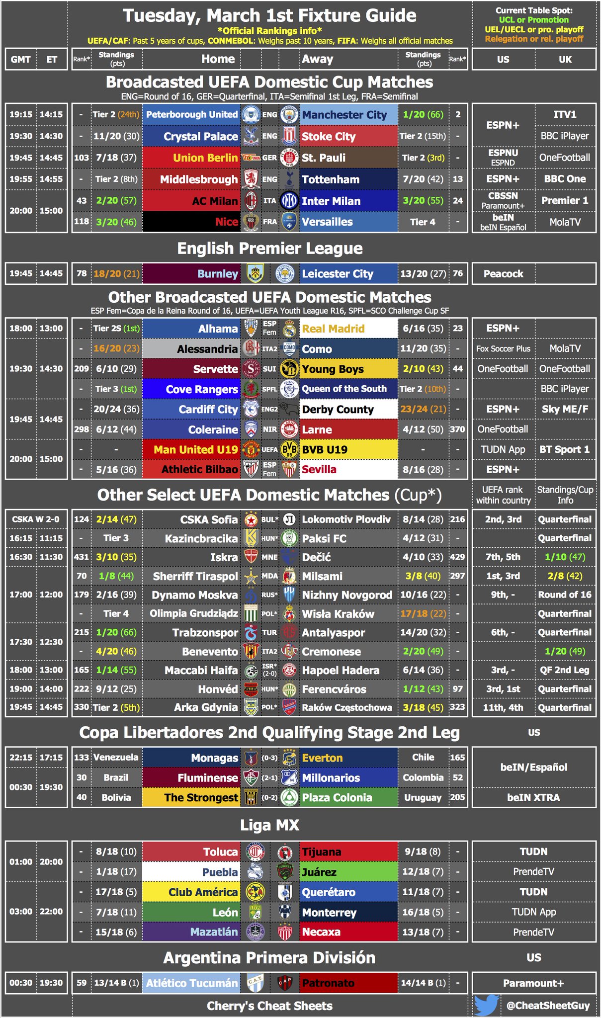 Burnley and Leicester play at 1:45 for the only midweek EPL game