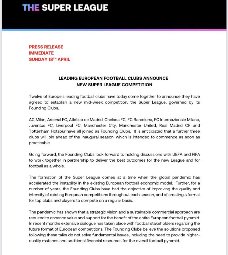 So if this Super League happens, I fully expect Swansea City to be promoted back to PL tonight.