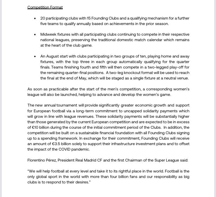 not saying youre wrong, but lets not forget this whole thing is Floretino's baby, and no one is more desperate for a huge financial bailout than the big spanish clubs.