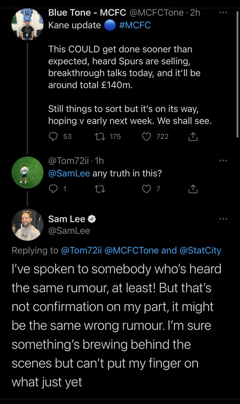 I’m starting to seriously doubt this Kane deal gets done. No denying he wants the move and he is City’s #1 target, but I think City messed up by not just offering what it was gonna take to get it done sooner. Levy has absolutely no reason to sell for anything less than what he wants. The longer it goes on the harder it will become for Spurs to replace him. City should have put all their cards on the table this week. Levy won’t sell him to Oil FC for 120. They don’t gain any leverage by waiting this out.