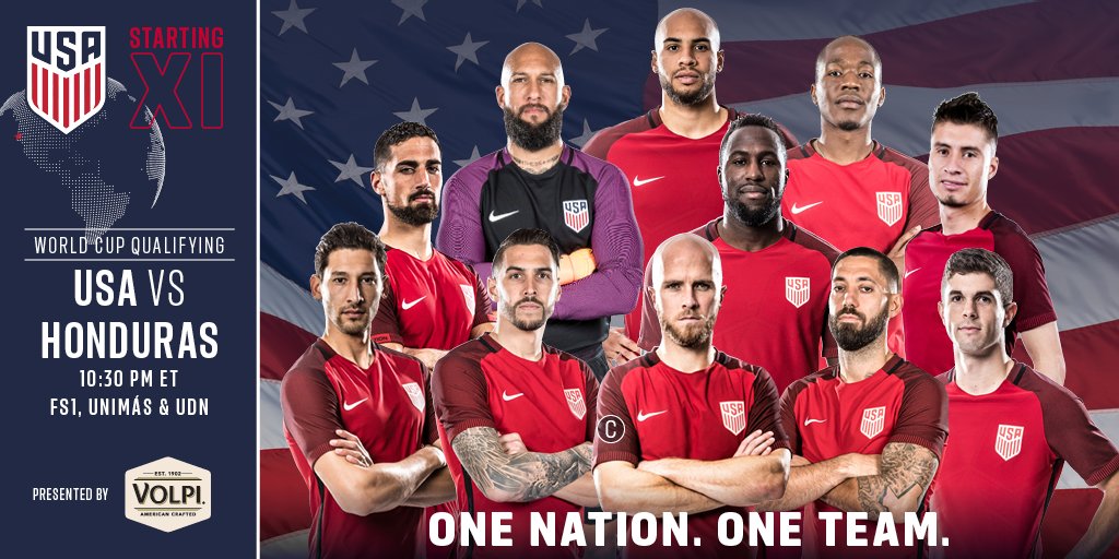 Howard; Villafana, Brooks, Gonzo, Cameron; Bradley; Lletget, Pulisic, Nagbe; Jozy, Deuce