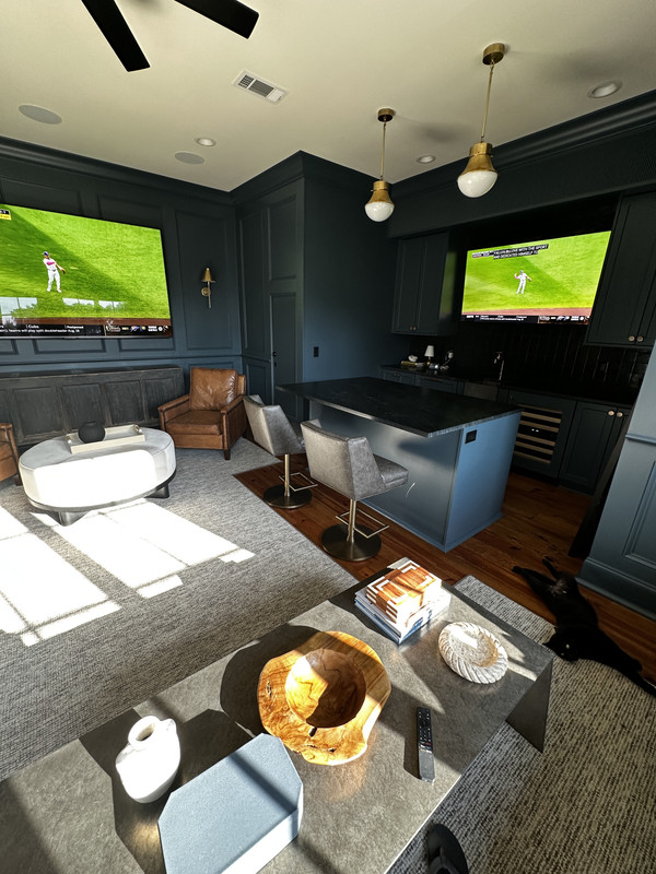 Coater get you some LED lights and put them behind your TV for back lighting will definitely make that TV screen pop with the dark walls you have. Football season is right around the corner time to turn on the purple LED's.