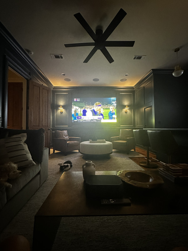 Coater get you some LED lights and put them behind your TV for back lighting will definitely make that TV screen pop with the dark walls you have. Football season is right around the corner time to turn on the purple LED's.
