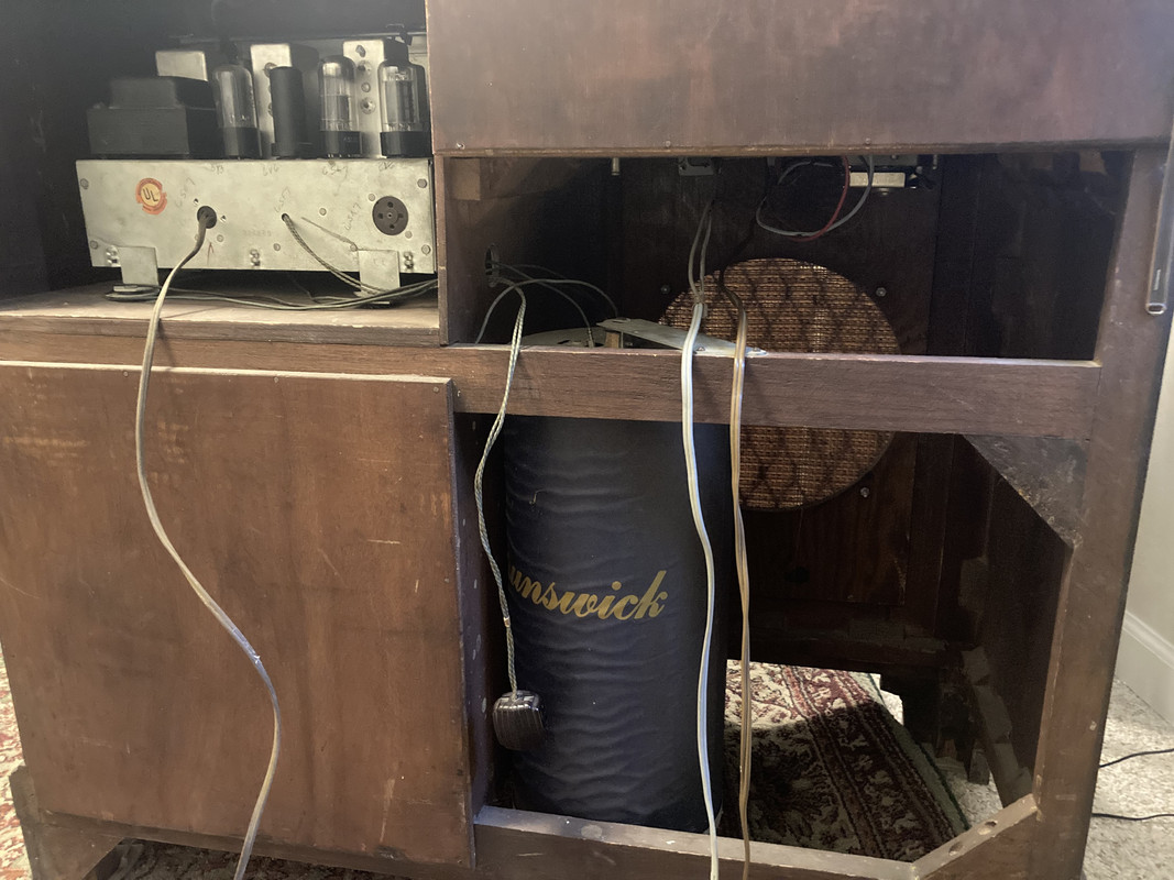 Definitely old tech. Does anyone know of someone that restores/repairs old Brunswick radios with panatrope? Original turntable replaced years ago. Tube chassis-I think the tubes are good but it’s missing the speaker and tuner needs repair. Also needs the turntable connected.