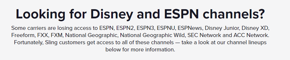 Disney owned co tent like espn and local abc channels are currently unavailable. Your price will decrease by 15$/mo. While the content remains off platform. For more details, please check your email.”