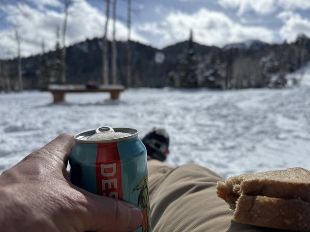 I very much appreciate the PB&J sandwich pic, that's my go-to lunch on the mountains to save at least $25/day. Looks like a great powder day, hope you've been enjoying it
