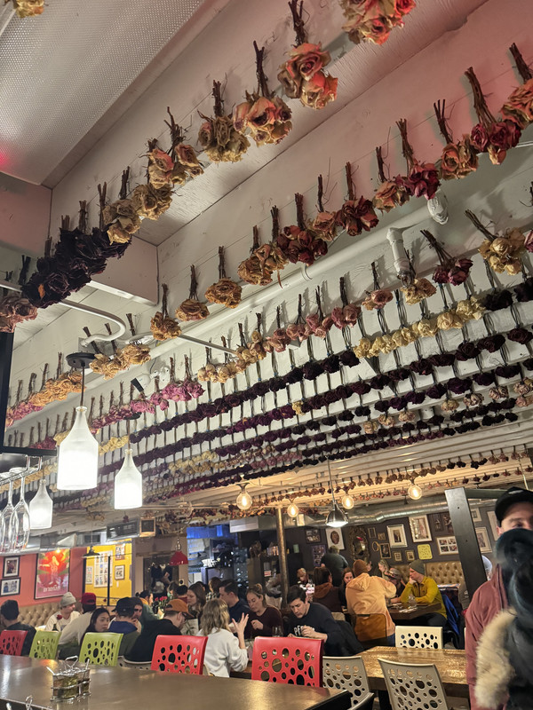 Dried roses hanging from the ceiling of Wild Rose (Thai) looks much cooler than the blizzard photos.