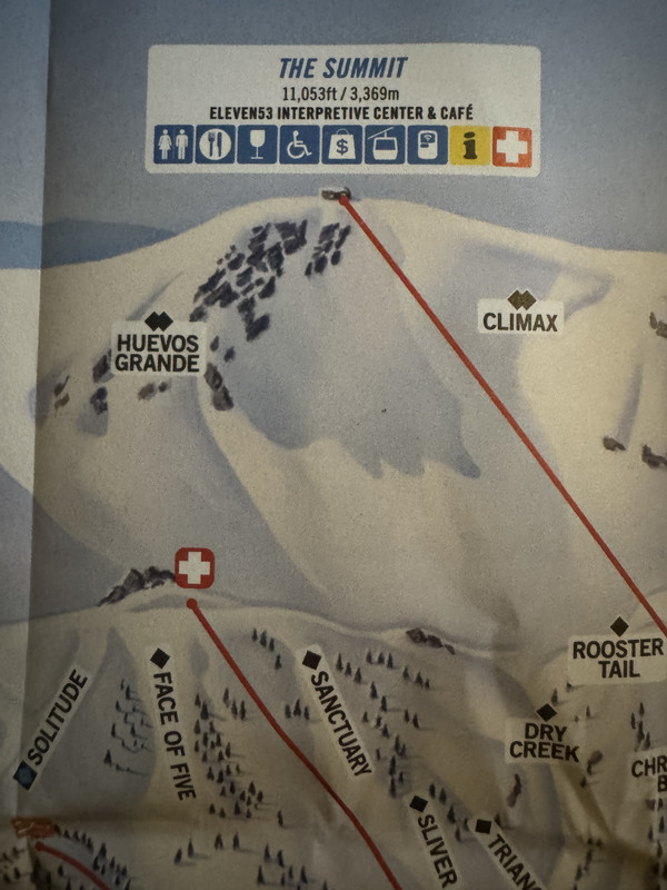Groomer day. Spring conditions. We spent most of the day lapping the Summit gondola line between Huevos Grande and Climax.