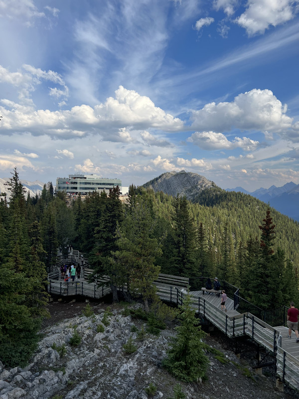 -Banff Gondola at Sulphur Mountain summit. Book in advance as it’s more expensive the day of ($80 a person, but a very cool experience, scariest gondola ride to top). Walk the skywalk up in the mountains, check out each floor, restaurants, coffee, live music up there.
