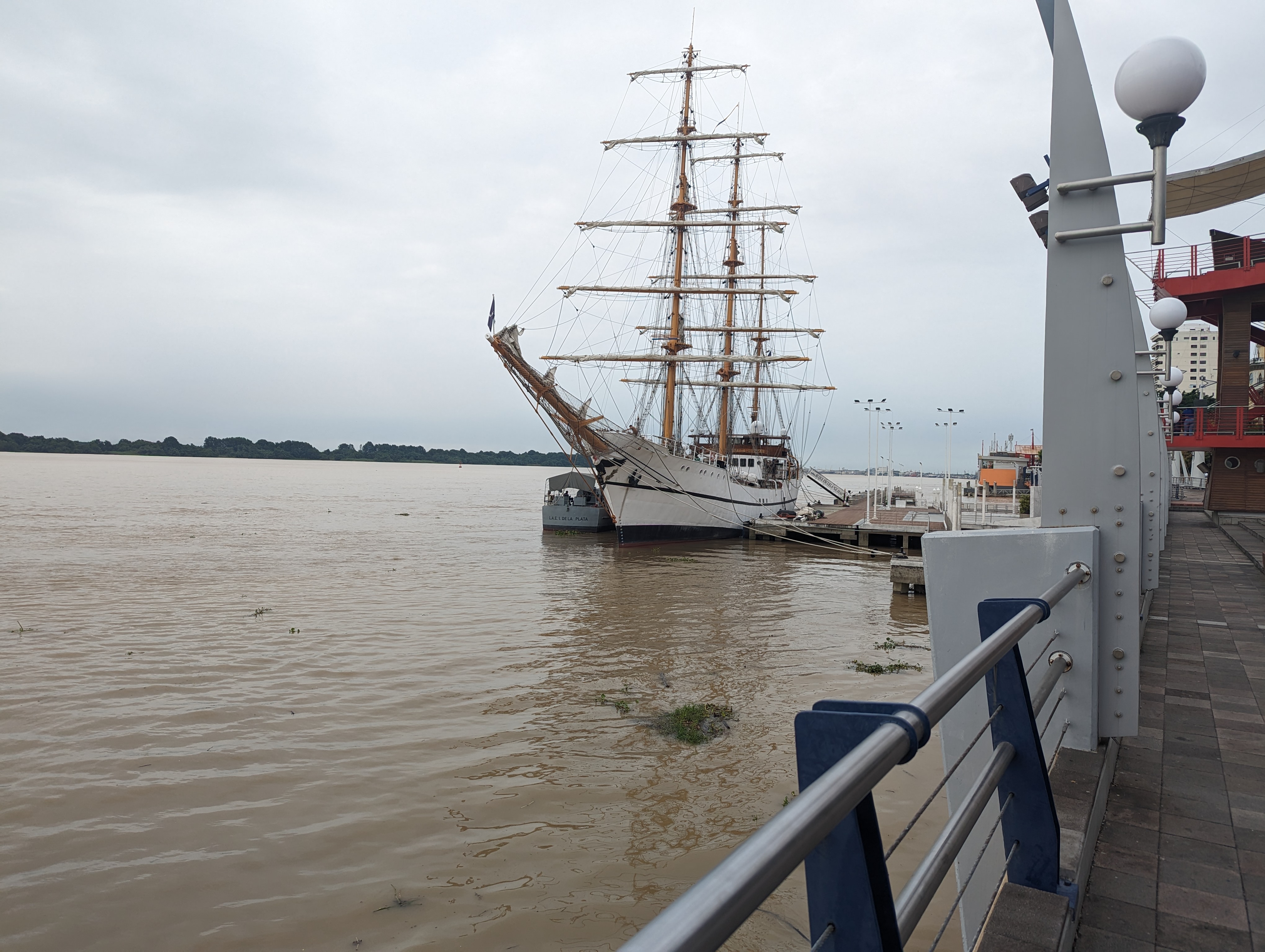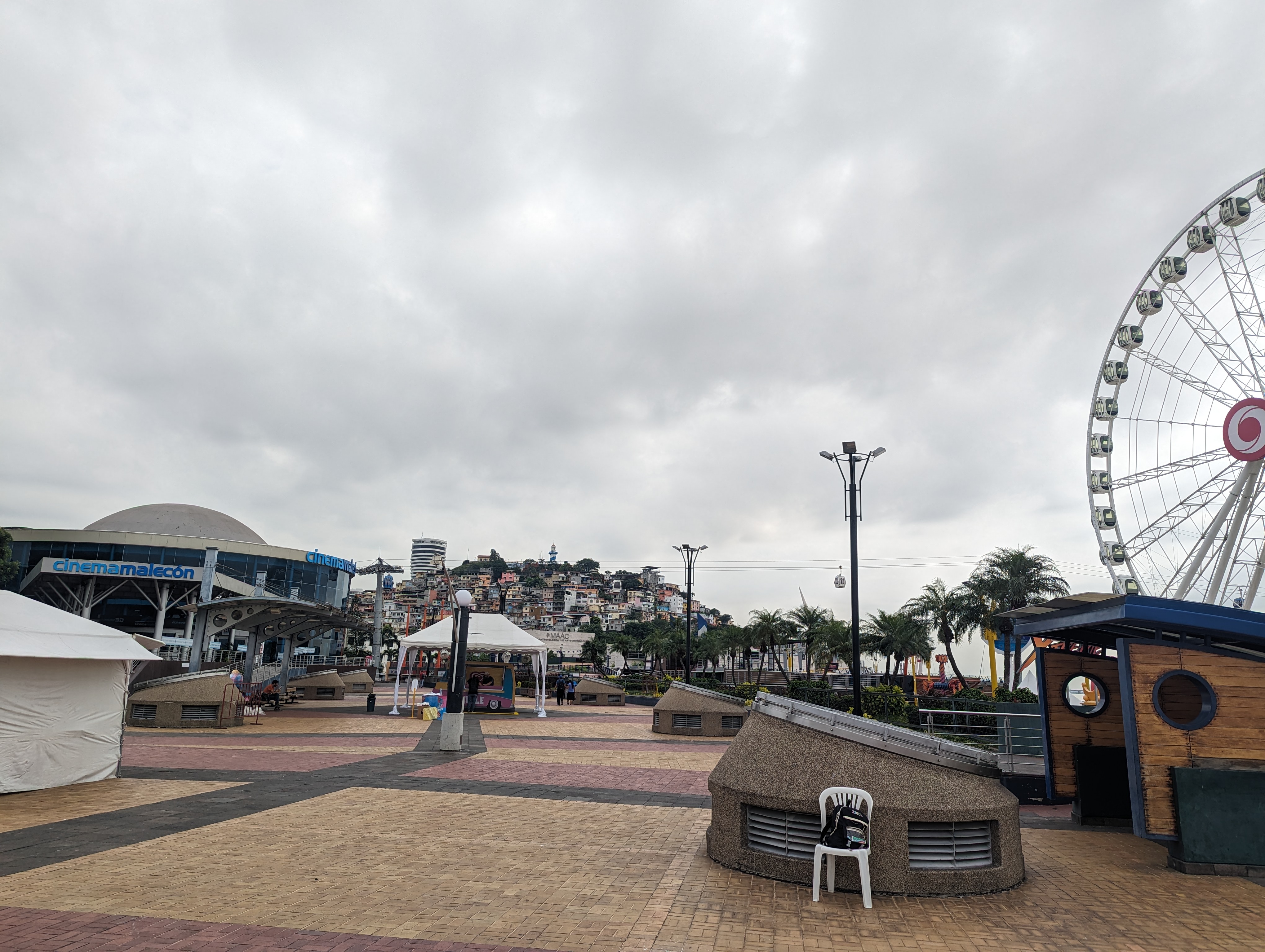 At the river, the Malecon starts. It's a stunning boardwalk with bars, restaurants, a movie theater, a huge ferris wheel, children's play areas, and an impressive botanical garden. It would have been great to visit in the evening, when it would have been full of people, but I was there fairly early, when there were only a few joggers and people walking their dogs. This ship goes out for trips on the river.