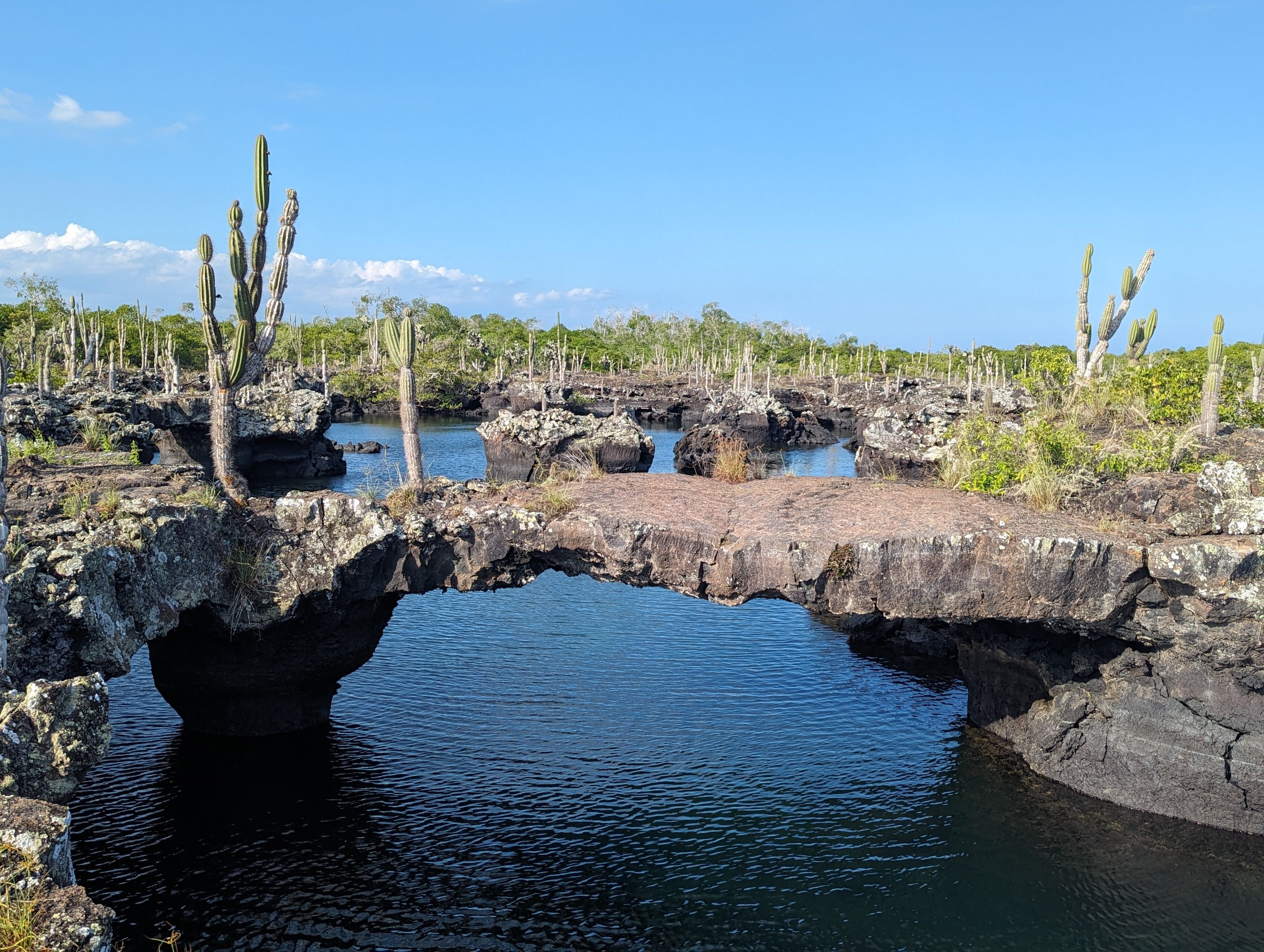 Anyway, the airport for Isla Santa Cruz is actually on the adjacent island of Baltra, so you have to take a bus from the airport to the ferry ($5) and then the ferry ($1) to get to Santa Cruz, which has about 30k inhabitants and is by far the most populous island. I took a taxi from there to my hotel, but I paid the drive extra (for a total of $50) to stop at the giant sinkholes of Los Gemelos and then to Rancho Chato to see wild tortoises and explore the lava cave tunnels.