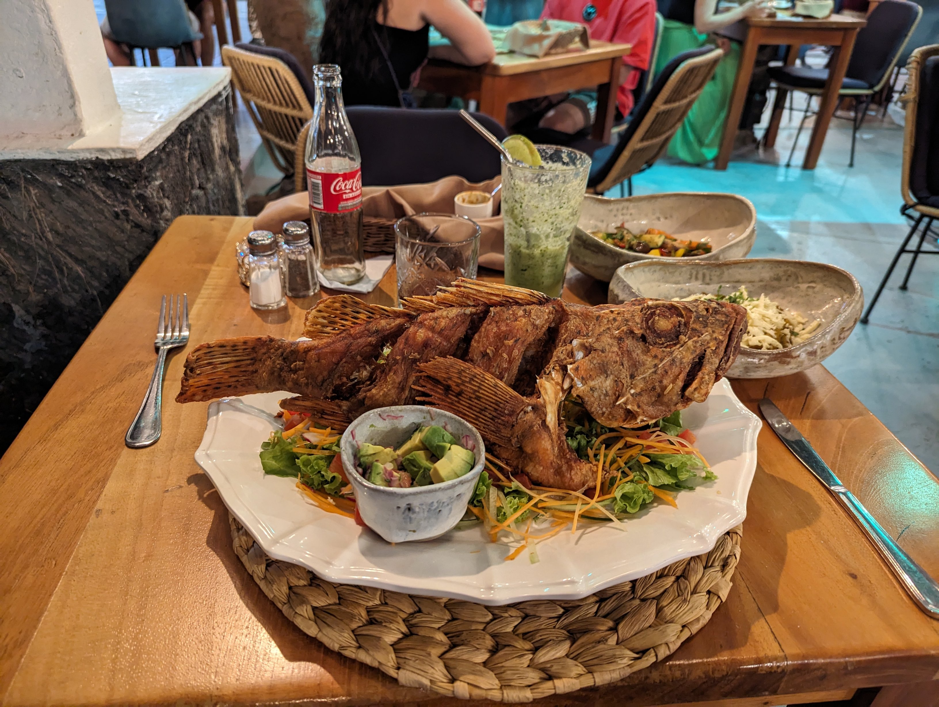 After taking the 3:00 ferry back to Puerto Ayora on the island of Santa Cruz, I had this fish, called a brujo, for dinner tonight.