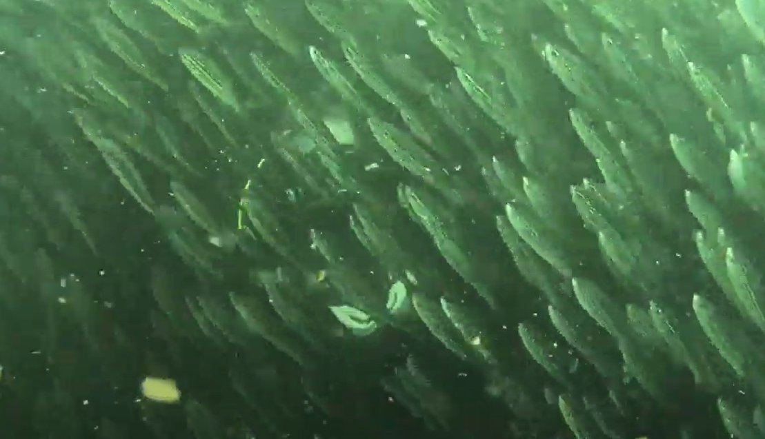 Getting inside the "ball" was almost scary: it was impossible to see anything other than the thousands of fish a foot away from me.