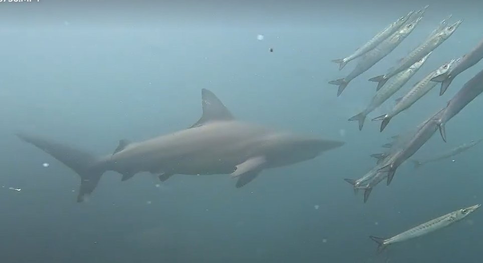 The best view of a blacktip came a little later in the dive, when we found a school of barracuda.