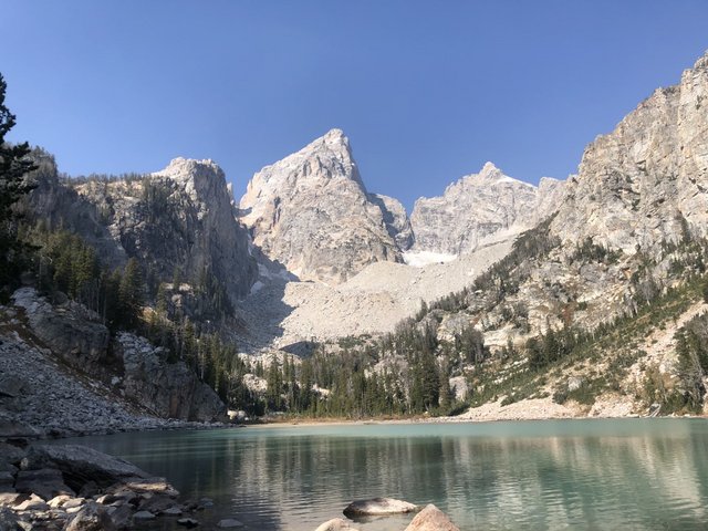 How adept are you with hiking? I did the hike up to Delta Lake which includes views of the Grand Teton among other peaks. This is definitely top 3 most beautiful places I've ever hiked to. Blue water, remote, and incredible backdrop. Warning, the hike is not easy and encompasses some scrambling up boulders, but damn is it worth it. There were some kids and people who have no business making the trek so it is doable. If you have time, try to fit it in your schedule.