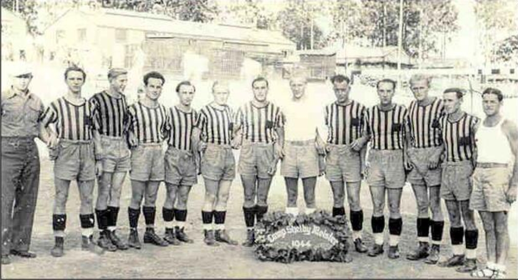 Camp Shelby, Mississippi 1944, German Luftwaffe pilots, and enlisted POW championship soccer team. Mississippi had around 20,000 German and Italian prisoners translocated to 14 camps in the state between 1943-46. Most being in the Delta.