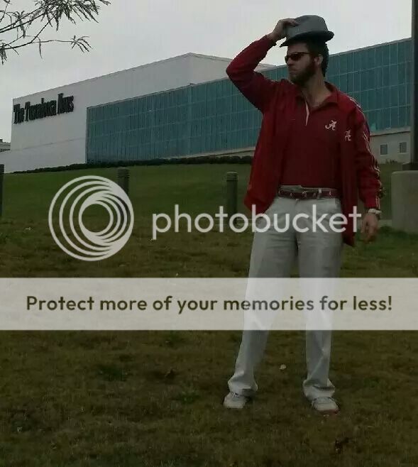 we traveled to Tuscaloosa last year for the rivalry game and I sported purple and gold every where on campus in a land of crimson. the deal was that I'd go to Tuscaloosa with him last year if he came this year so that I could drag him around in a sea of gold.