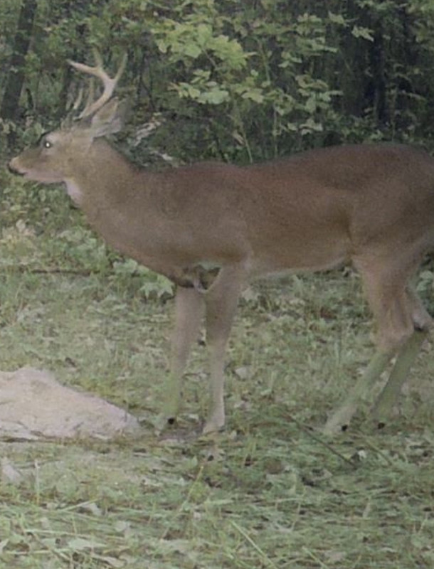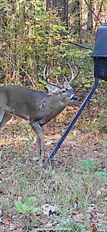 Believe this guy got his arse kicked by the 8 year old buck. He’s missing his horns on the left side, only thing left is the brow tine. He has also has a nasty wound on his shoulder.