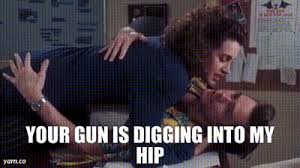 Excuse me officer, you're gun is digging into my hip.