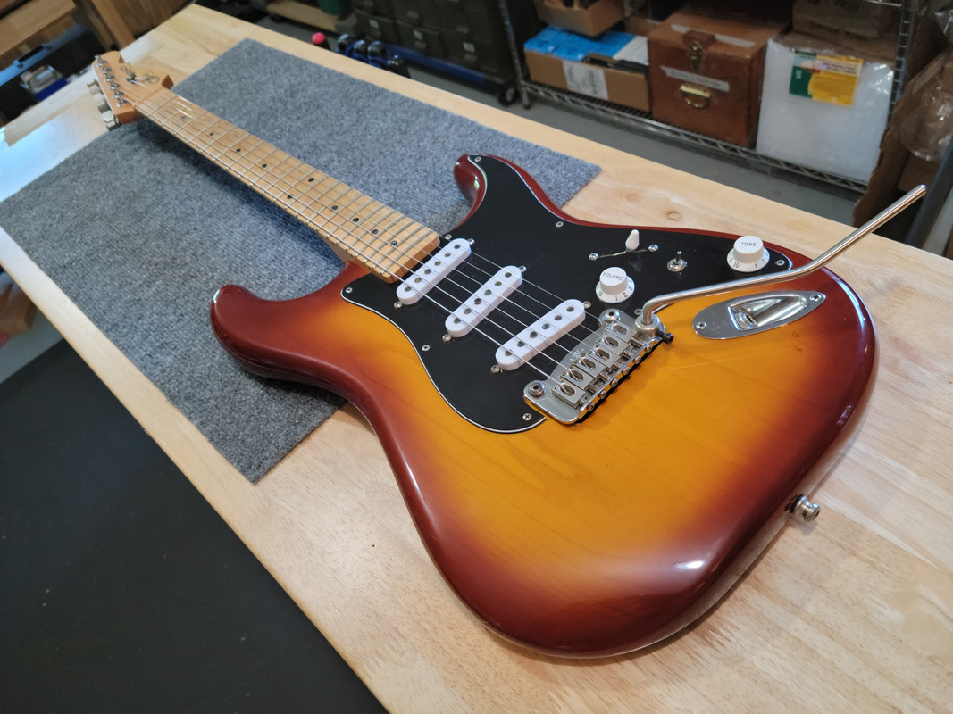 Here's my '96 Legacy. I've owned it longer than any guitar in my playing history. It has my pickups, my preferred wiring circuit, a Fret Shack refret with super jumbos, a trunk and fingerboard conversion from the stock satined poly finish to hand-rubbed Danish oil. I've had people offer me trades worth ten times more my G&L's value, the guitar is just such an incredible example of a S style solidbody. Not for sale. Especially now.