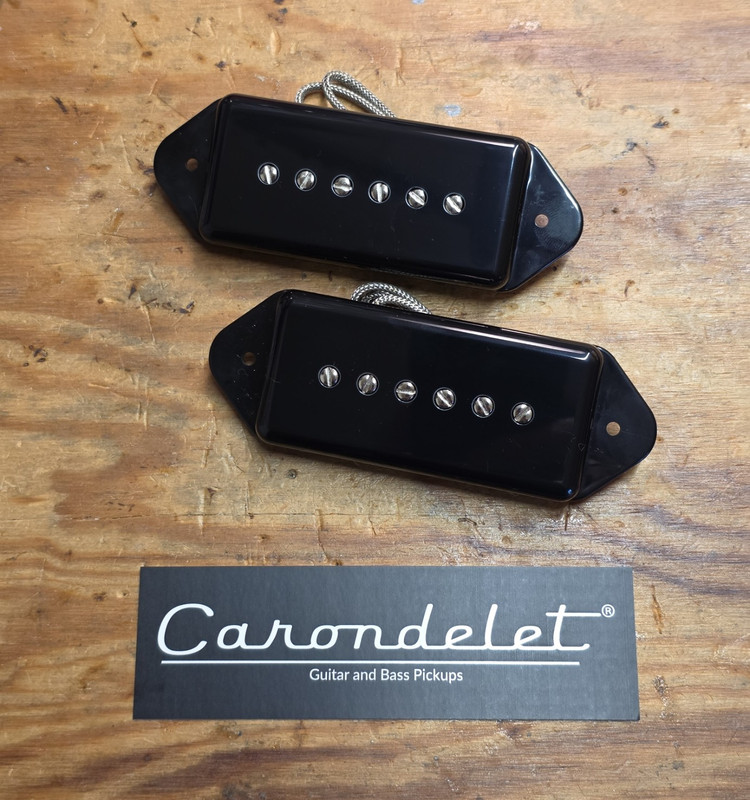 Behold three very custom Carondelet "Hog Ear" dog-ear P-90s, inspired by Charlie and hand-wound by yours truly to Charlie's preferred specs.