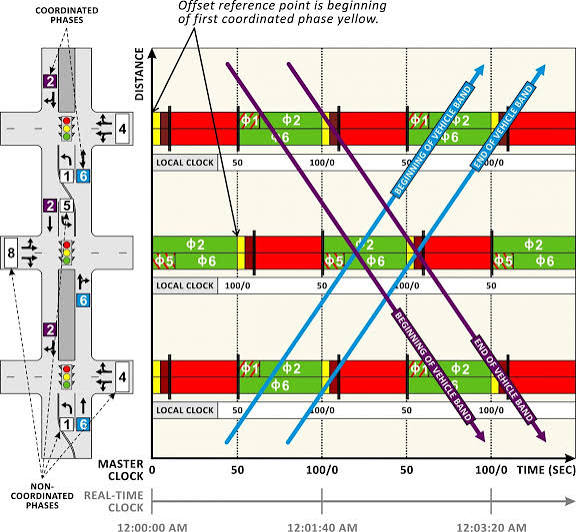 Spacing of signals also makes coordinating both directions impossible sometimes. Downtown areas are easier with standard blocks and one-way roads.