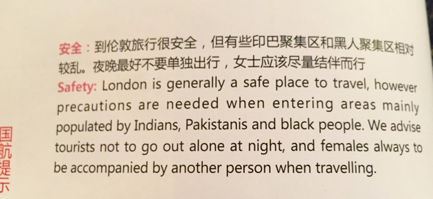 re: Chinese airline magazine warns travelers about London ghettos