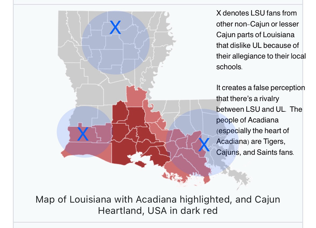 A small niche of fans trying to create a fake rivalry with the most Cajun school / region of the state - Acadiana…