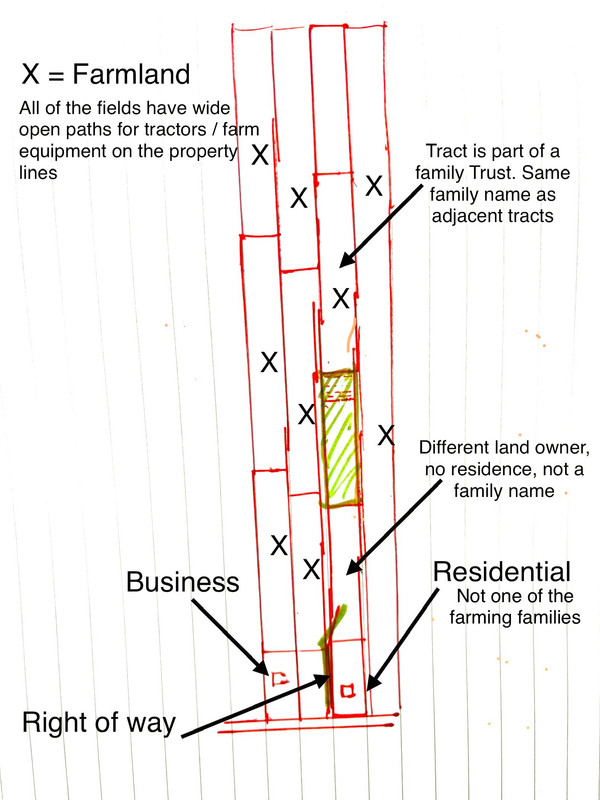 This sketch is rough but you might get the idea… the shaded green tract is what I’m looking at.
