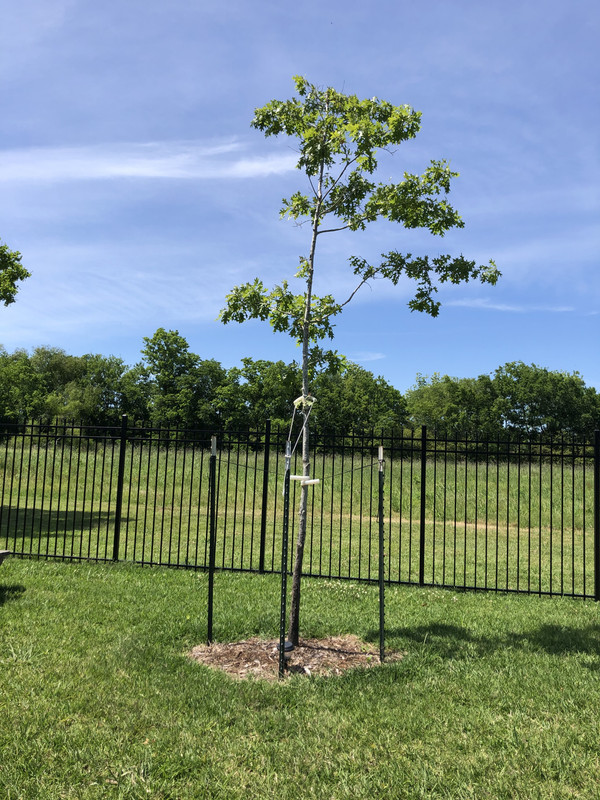 The Schumard was in the ground for a year but it was on the fence line. After 1 year, we decided to put a fence so I moved it last January (2019) to where it currently is.