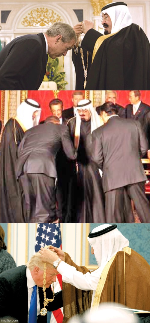 obama bowed...Trump leaned over King Salman could put the "Collar of Abdulaziz Al Saud Medal" on him...big difference.