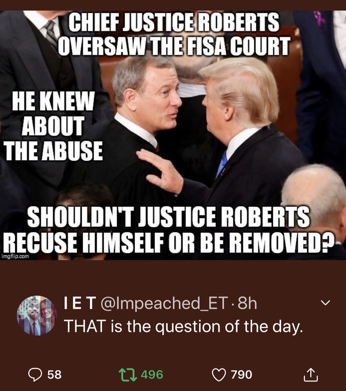 He's been involved in everything from the beginning. It's his FISA court that approved 4 baseless warrants to surveil Trump before he ever took office.