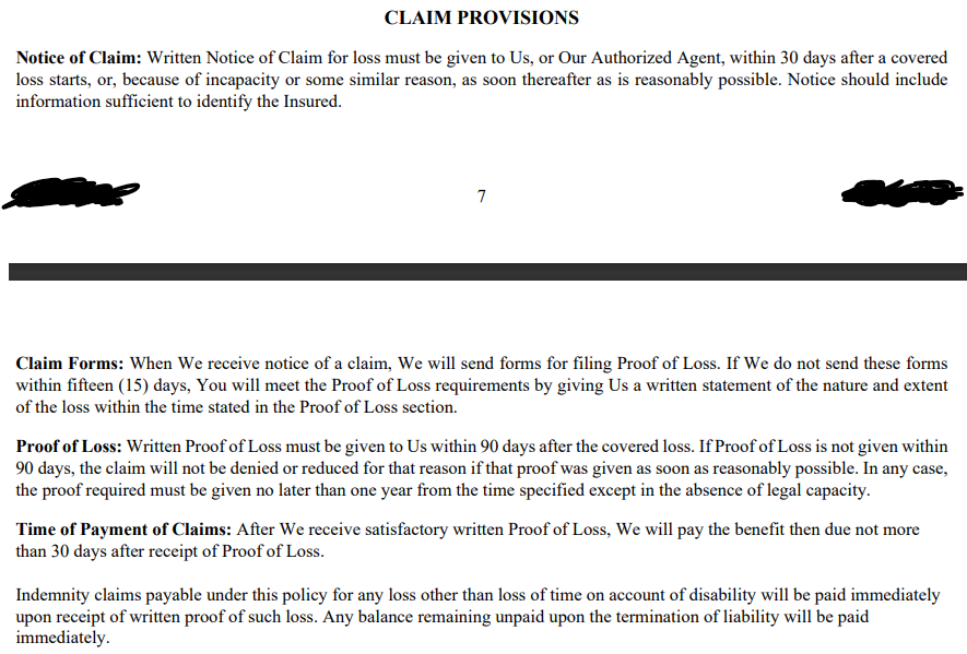 - He was hospitalized for more than his 10-day indemnity limit but thought that this policy was only a 'cancer benefit' so he didn't think to file a claim within the 30-day Notice of Claim time period. Hospitalization was around 6 months ago.