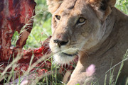 The next day, we did an all day game drive in the Serengeti and saw basically everything except the Black rhino. We came upon a group of lions that had made a fresh kill. The three males had finished eating when we got to the site, but the lioness was still feasting on the buffalo. There was a large group of hyenas that started to close in and they actually shared the carcass with the lioness. Unreal. Another Bush picnic, and then the afternoon game drive.