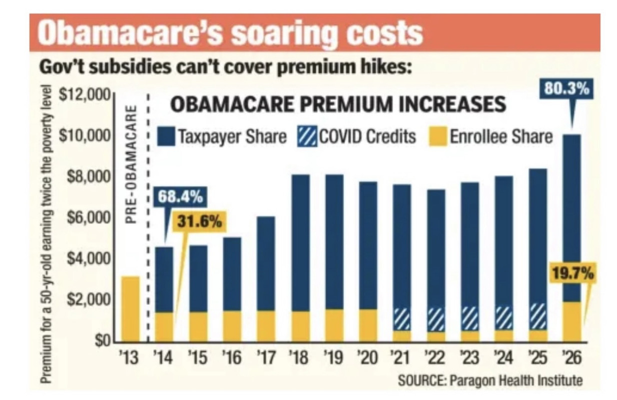 It has to do with the striped part which democrats passed during covid but they put an expiration date of Dec 31 2025 on those covid credits. Obamacare premiums have been artificially super duper low but those good times are over. Notice that the government will still be subsidizing 80% of the premiums.