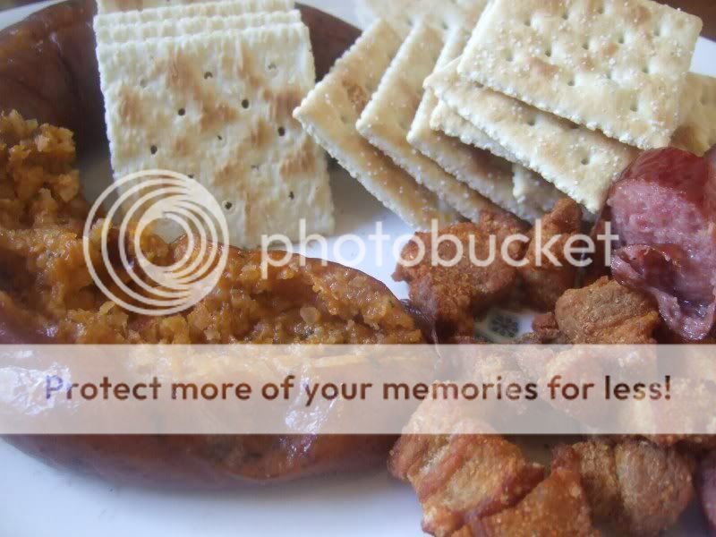 "Crawfish boudin, popular in Cajun cuisine, is made with the meat of crawfish tails added to rice. It is often served with cracklins (fried pig skins) and saltine crackers, hot sauce, and ice cold beer."