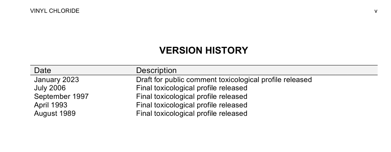 The toxicological profile for vinyl chloride was updated in January, a couple of weeks before the spill.